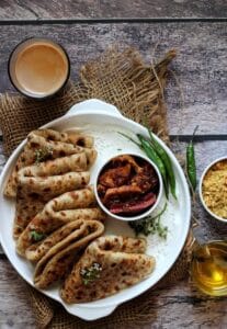 Serve the hot beet and carrot thepla with yogurt, pickle, or chutney.