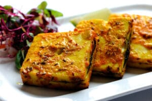 Transfer to a plate, garnish with fresh herbs, and serve warm.