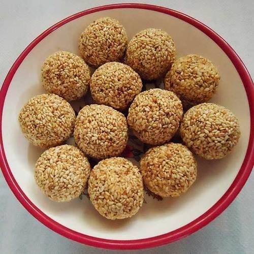 - Work quickly while shaping the ladoos, as the jaggery hardens as it cools.