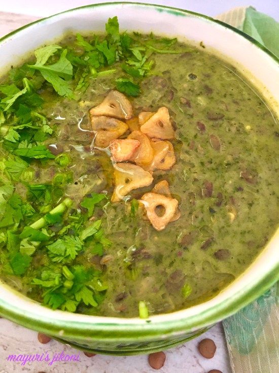 Once the rajgira is cooked, add the chopped spinach leaves. Stir and cook for another 3-4 minutes until the spinach wilts and combines well with the curry.