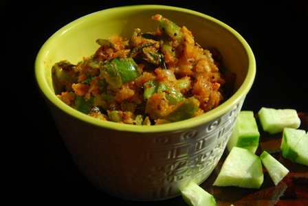 Cover and cook on medium flame for 5-7 minutes until turai softens but remains slightly crunchy.